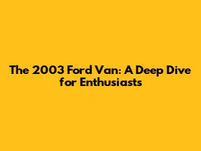 2003 Ford Van: Your Ultimate Guide