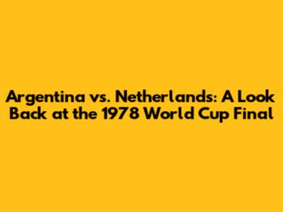 Argentina Vs. Netherlands: A Look Back At The 1978 World Cup Final