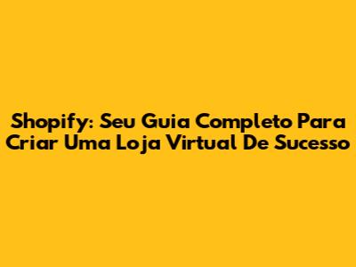 Shopify: Seu Guia Completo Para Criar Uma Loja Virtual De Sucesso