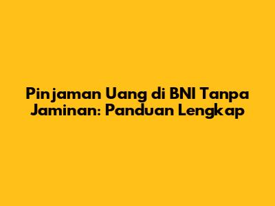 Pinjaman uang di BNI tanpa jaminan menjadi solusi populer bagi banyak orang yang membutuhkan dana cepat tanpa harus memberikan aset sebagai jaminan. Bank Negara Indonesia (BNI) menawarkan berbagai produk pinjaman yang bisa disesuaikan dengan kebutuhan finansial Anda. Artikel ini akan membahas secara mendalam mengenai cara mendapatkan pinjaman tanpa jaminan di BNI, persyaratan yang dibutuhkan, serta tips agar pengajuan Anda disetujui. Jadi, simak terus ya!