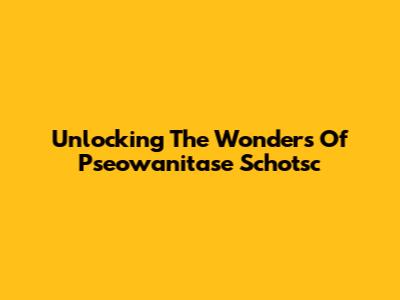 Unlocking The Wonders Of Pseowanitase Schotsc