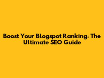 Boost Your Blogspot Ranking: The Ultimate SEO Guide