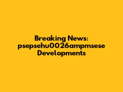 Breaking News: Psepsehu0026ampmsese Developments