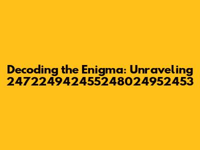 Let's dive into the fascinating world of seemingly random number sequences! Today, we’re going to try and make sense of: 247224942455248024952453 2463249524772495 2482249424392477 2453250924802495245325032463. It looks like a jumbled mess, right? But don't worry, we'll break it down and explore potential meanings, origins, and uses. It could be anything from a cryptic code to a randomly generated identifier. Whatever it is, understanding its context is key.