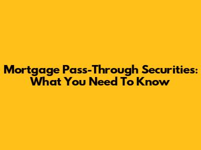 Mortgage Pass-Through Securities: What You Need To Know