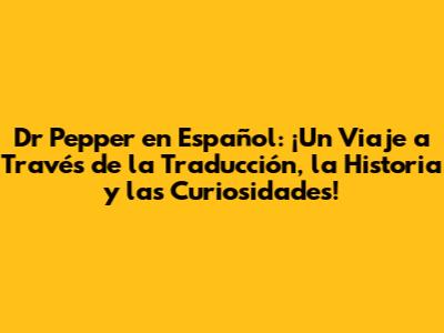 Dr Pepper En Español: ¡Todo Lo Que Necesitas Saber!