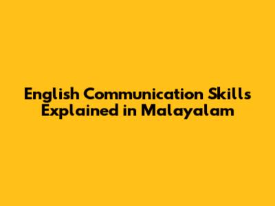 English Communication Skills Explained In Malayalam