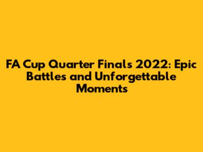 Alright guys, buckle up because we're diving headfirst into the FA Cup Quarter Finals 2022! This was a round packed with drama, upsets, and some absolutely stunning football. I'm talking nail-biting finishes, underdog stories, and moments that'll be replayed for years to come. Let's break down the draw, the matches, and all the juicy details that made this stage of the competition so unforgettable. We'll look at the key moments, analyze the performances, and try to figure out what it all meant for the teams involved. It's time to relive the magic and celebrate the beautiful game. The FA Cup, as always, delivered the goods, providing us with a weekend of footballing bliss! Ready to jump in? Let's go!