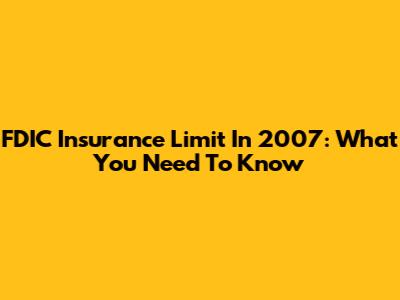 FDIC Insurance Limit In 2007: What You Need To Know
