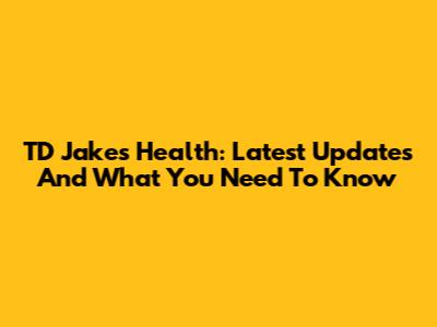 TD Jakes Health: Latest Updates And What You Need To Know