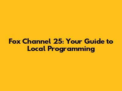 Fox Channel 25: Your Guide To Local Programming