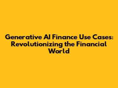Generative AI Finance Use Cases: A Deep Dive