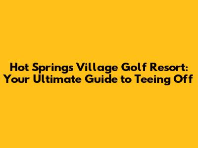 Unveiling the Hot Springs Village Golf Resort Experience