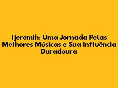 As Melhores Músicas de Ijeremih: Um Top 10 Imperdível