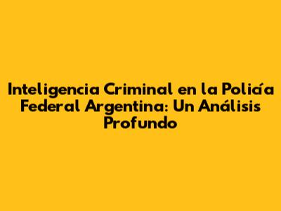 Inteligencia Criminal En La Policía Federal Argentina: Un Análisis Profundo