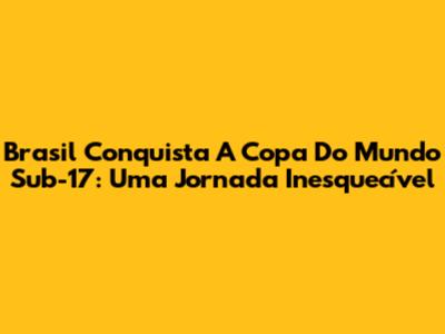 Brasil Conquista A Copa Do Mundo Sub-17: Uma Jornada Inesquecível