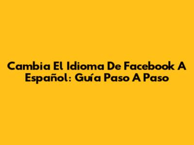Cambia El Idioma De Facebook A Español: Guía Paso A Paso