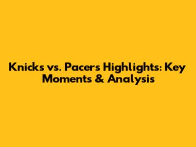 Knicks Vs. Pacers Highlights: Key Moments & Analysis