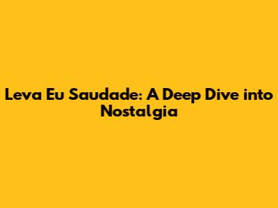 Leva Eu Saudade: A Deep Dive Into Nostalgia