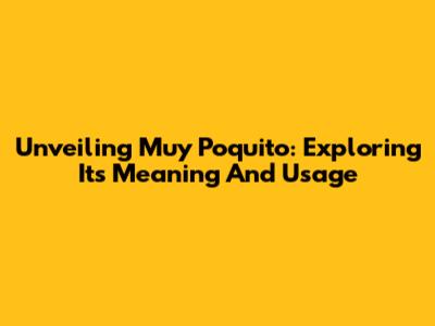 Unveiling 'Muy Poquito': Exploring Its Meaning And Usage