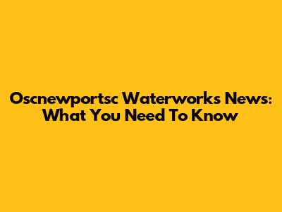 Oscnewportsc Waterworks News: What You Need To Know