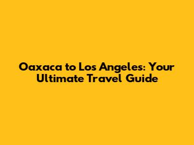 Oaxaca To Los Angeles: Your Ultimate Travel Guide