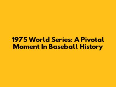 1975 World Series: A Pivotal Moment In Baseball History