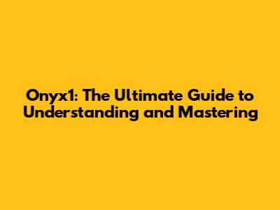 Onyx1: The Ultimate Guide To Understanding And Mastering