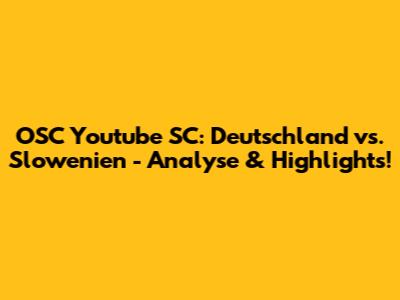 OSC Youtube SC: Deutschland Vs. Slowenien - Analyse & Highlights!