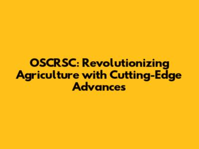 OSCRSC: Revolutionizing Agriculture With Cutting-Edge Advances