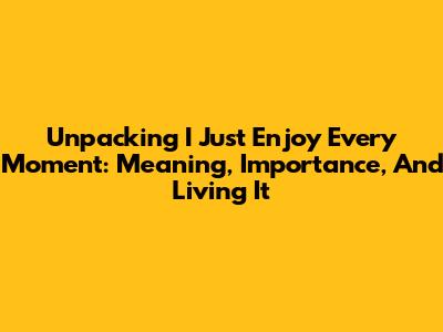 Unpacking 'I Just Enjoy Every Moment': Meaning, Importance, And Living It