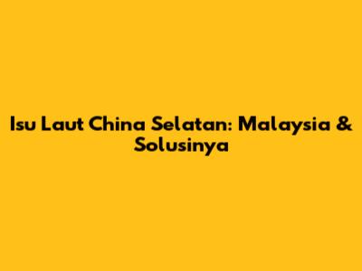 Isu Laut China Selatan: Malaysia & Solusinya