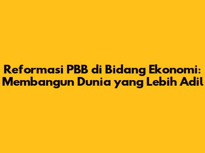 Reformasi PBB Di Bidang Ekonomi: Membangun Dunia Yang Lebih Adil