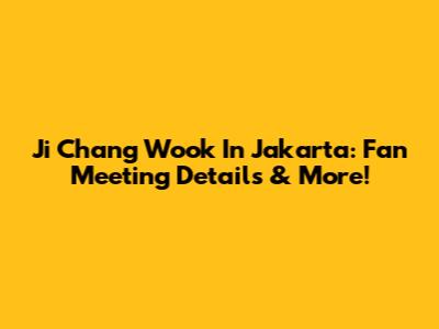 Ji Chang Wook In Jakarta: Fan Meeting Details & More!