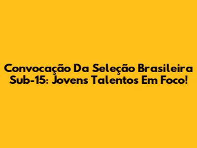 Convocação Da Seleção Brasileira Sub-15: Jovens Talentos Em Foco!