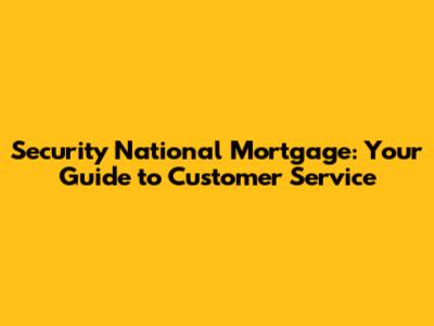 Security National Mortgage: Your Guide To Customer Service