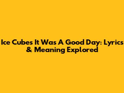 Ice Cube's 'It Was A Good Day': Lyrics & Meaning Explored