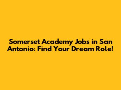 Somerset Academy Jobs In San Antonio: Find Your Dream Role!