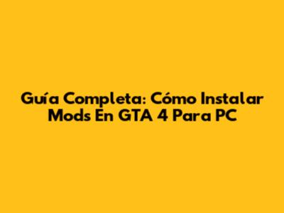 Guía Completa: Cómo Instalar Mods En GTA 4 Para PC