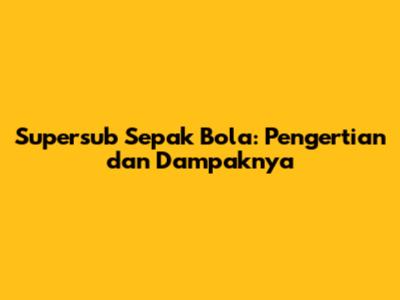 Supersub Sepak Bola: Pengertian Dan Dampaknya