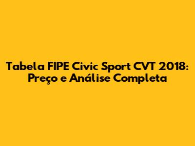 Hey guys! If you're thinking about buying or selling a Civic Sport CVT 2018, you're probably wondering about the Tabela FIPE value. Knowing the Tabela FIPE is super important because it gives you a solid idea of the average market price, helping you make a fair deal. In this article, we'll dive deep into the Tabela FIPE for the Civic Sport CVT 2018, breaking down the factors that influence its price, how it compares to other models, and everything else you need to know to navigate the used car market like a pro. Let's get started!