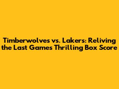 Timberwolves Vs. Lakers: Reliving The Last Game's Thrilling Box Score