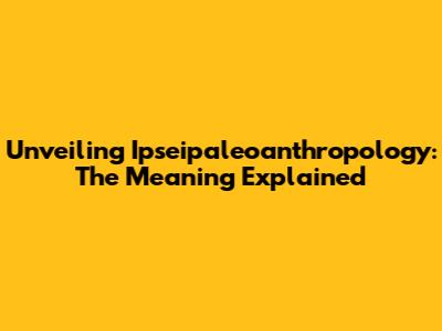 Unveiling Ipseipaleoanthropology: The Meaning Explained
