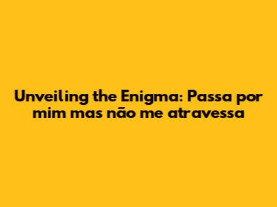 Unveiling The Enigma: Passa Por Mim Mas Não Me Atravessa