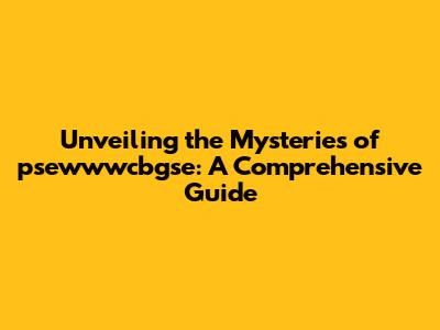 Unveiling The Mysteries Of Psewwwcbgse: A Comprehensive Guide