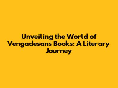 Unveiling The World Of Vengadesan's Books: A Literary Journey