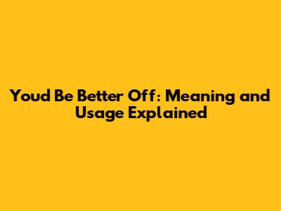 You'd Be Better Off: Meaning And Usage Explained